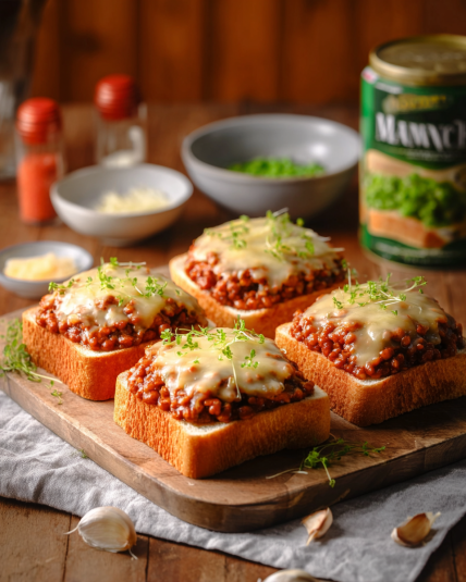 Finally, assemble everything—toast, filling, cheese—and bake briefly again. The result is a perfect balance of crispy, saucy, and cheesy textures.