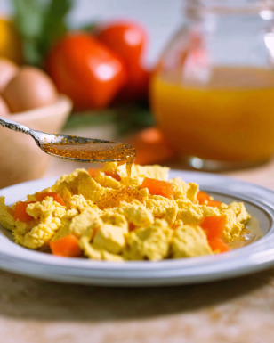 Turmeric adds color and warmth, giving the tofu that classic scrambled egg look.