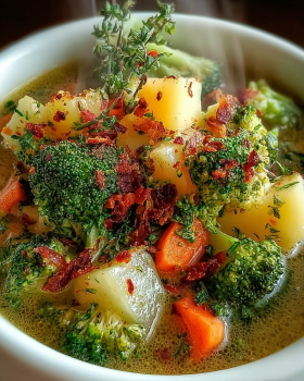 The soup itself is naturally plant-based, making it one of the easiest healthy Italian broccoli soup rustic style recipes to adapt.