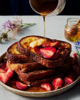 To keep this healthy vegan french toast recipe quick breakfast, use unsweetened plant milk and reduce syrup.