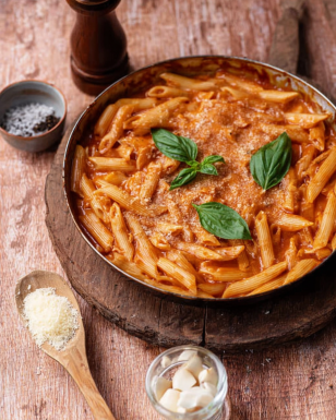 Its shape holds the sauce beautifully, which is why restaurant style penne alla vodka sauce is so popular and satisfying.